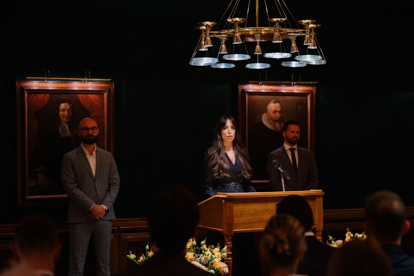 Jessica Brackmann (Programmleiterin) eröffnete den Abend, gefolgt von wertschätzenden und zukunftsgerichteten Reden von David Seidl (Präsident des Leitenden Ausschusses des CUREM), sowie Prof. Dr. Michael Trübestein (Präsident von RICS Switzerland). Claudio Däscher (Präsident von CUREMalumni) unterstrich in seiner Ansprache die Relevanz des Netzwerks, das zahlreiche Führungspersönlichkeiten der Branche vereint und den Alumni wertvolle Verbindungen sowie langfristigen Austausch bietet.