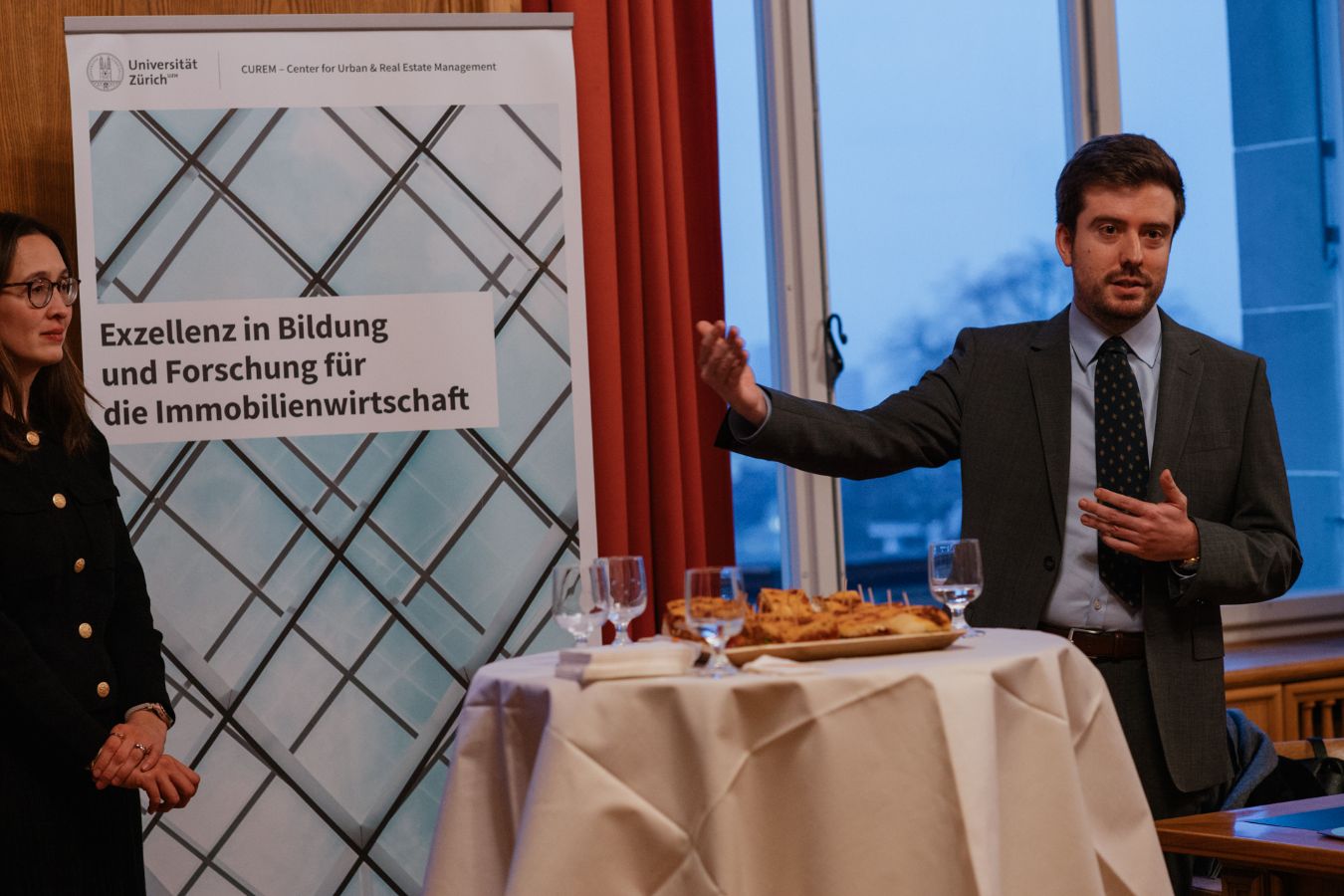 Am Montag, den 15. Dezember 2025, hielt Prof. Francisco Amaral seine Antrittsvorlesung zum Thema: When Shelter Becomes Strategy: Housing as an Asset. Die Veranstaltung wurde von Prof. Dr. Harald Gall, Dekan der Faculty of Business, Economics, and Informatics der Universität Zürich, eröffnet. In seiner Begrüssung betonte der Dekan die hohe gesellschaftliche und wirtschaftliche Bedeutung der Immobilienforschung: Wohn- und Immobilienmärkte prägen nicht nur individuelle Lebensentscheidungen, sondern wirken sich direkt auf Wohlstand, Chancengleichheit, Finanzstabilität und Stadtentwicklung aus. Vor diesem Hintergrund unterstrich er die strategische Bedeutung der Professuren im Bereich Real Estate Economics & Finance für die Universität Zürich. Zugleich hob er hervor, dass die UZH mit Prof. Francisco Amaral einen Wissenschaftler gewinnt, der in der internationalen Forschungsgemeinschaft bereits aussergewöhnliche Anerkennung geniesst und dem das Potenzial zugesprochen wird, das Feld nachhaltig mitzuprägen.